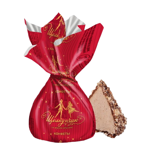Конфеты на основе тёртого жареного арахиса в нежной шоколадной глазури со вкусом капучино и хрустящей вафельной посыпке.