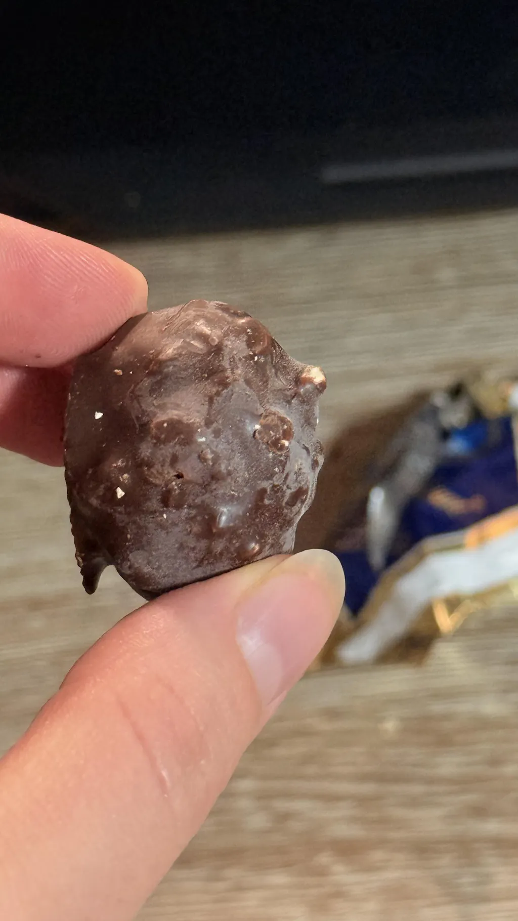 Due to the natural composition of chocolate products, slight white bloom may appear as a result of temperature changes, which does not affect the taste, quality, or safety of the product.